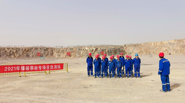 3月16日,泗水分公司为检验员工在矿山开采爆破作业过程中的组织程序执行情况,以及应变突变事故的处理能力开展了“2021年爆破事故专项应急演练――爆破飞石伤人演练”。