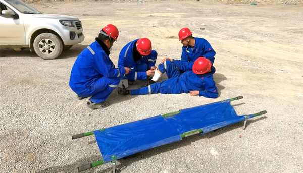 本次演练由泗水分公司经理刘进德为总指挥,指挥领导应急小组开展此次爆破演练。演练主要模拟爆破作业过程中因炮孔充填深度不够,导致爆破飞石砸伤人员的场景。演练开始后,应急小组立即启动专项应急预案,迅速组织警戒治安组、医疗救护组等各小组按照分工与职责,赶赴现场展开救援,紧急处理伤员伤势并送医救治,圆满完成各项演练任务。