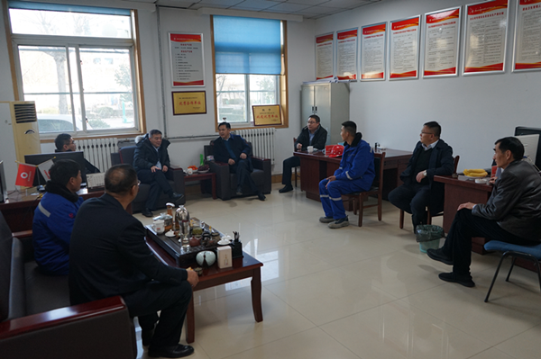 张总一行首先来到分公司驻地,在办公室听取了公司副总经理刘占中关于平阴分公司2020年度工作开展有关情况汇报,之后对办公区域、生活环境、冬季采暖、项目部人员家庭及经济收入等方面问题进行调研。