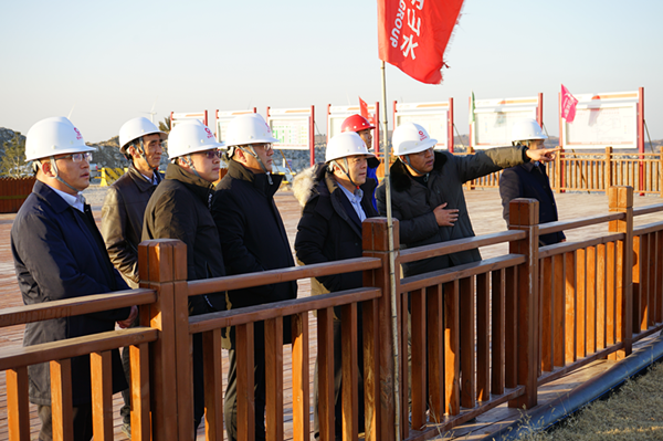 在观景平台,刘向张总一行介绍了项目建设初期对矿山治理、绿色矿山建设过程、矿山喷淋系统、路王浆道路、东部采区终了边坡及平阴山水3号水泥生产线等重点工作开展完成情况。