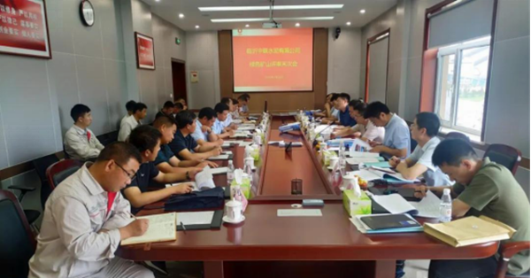 随后,兰陵分公司领导和临沂中联相关领导,陪同专家组一行到临沂中联水泥厂,召开验收评审会。临沂中联水泥总经理王建军向专家组详细汇报了矿山安全管理、规范开采、环保治理以及节能降耗等方面的情况,并以专题片的方式,形象展示了绿色矿山建设成果。