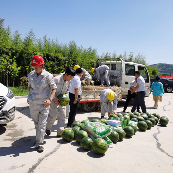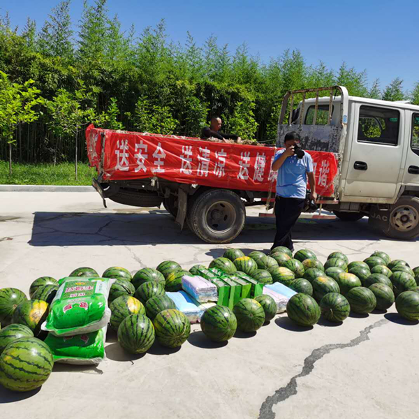 为向一线职工送关爱,送盛夏清凉,李主席一行给分公司全体员工带来清凉又温暖的防暑降温用品,包括西瓜、绿豆、茶叶、毛巾等。