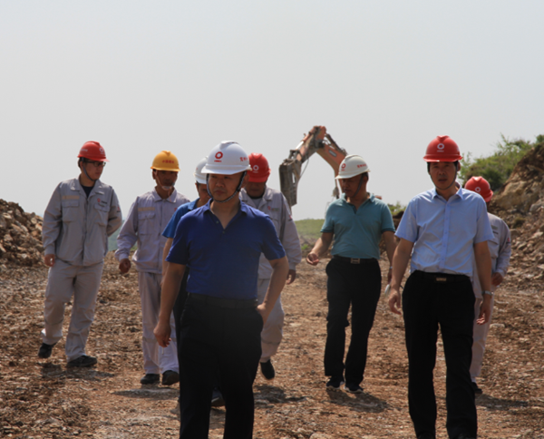 在矿山现场,孙总听取了分公司经理白凤龙关于采面情况和目前所面临问题的汇报后,到开采平台、破碎站,对穿孔作业、铲装作业、道路运输、破碎作业等工作进行安全检查。