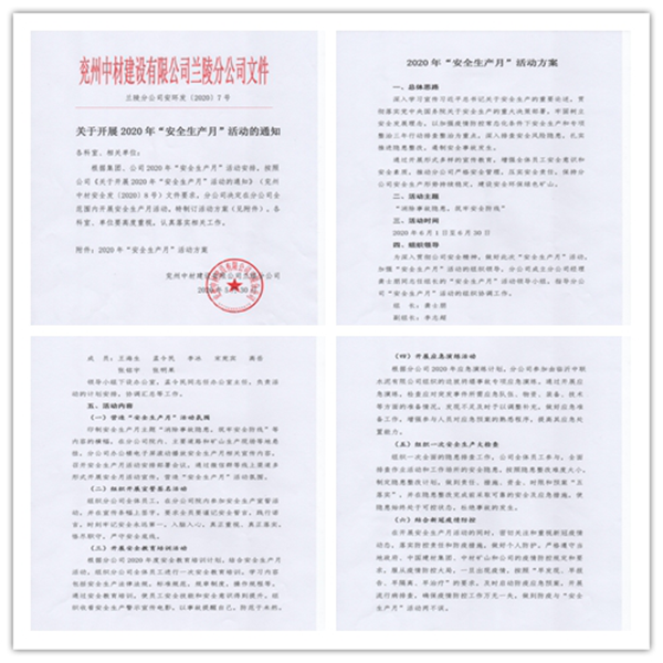 为进一步提升员工安全素质,促进安全生产形势持续稳定,兖州中材兰陵分公司认真贯彻落实各级部门安排部署,积极行动、全员参与,深入开展2020年安全生产月活动。