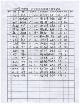 返程人员登记                                                           每日体温监测