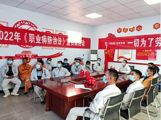会议开始前,观看尘肺病宣传片《爱·让肺自由呼吸》,看着被病痛折磨的尘肺病人,听着那句“呼吸成了最困难的事”,职工们似乎产生了些许压力。