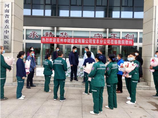 宝丰分公司经理亲切地将精心准备的鲜花送到护士的手中,并再次对医护人员表示慰问,祝愿全体医护人员及家人身体健康,致敬这些走在抗击疫情一线的最美“白衣天使”。