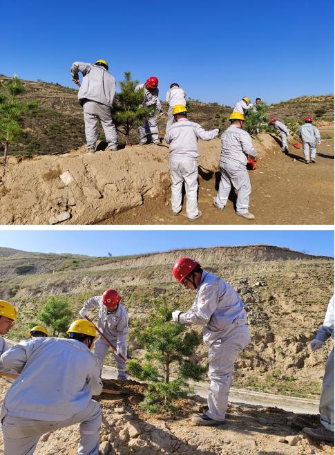“春回大地万物苏,植树添绿正当时。”2022年是中国第72个劳动节,也是国际第132个劳动节,值此节日来临之际,兖州中材保德分公司为贯彻绿色发展理念,特地组织了以“党旗红,矿山绿”为主题的员工植树活动。