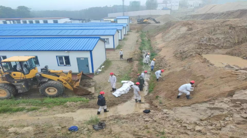 2022年6月20日早6点,接应急管理部门通知吉林地区预计未来24小时内将有强降雨,舒兰分公司项目经理宋宪军紧急通知各科室人员,组织对现场、生活区、炸药库、维修车间等地点进行了防汛设施检查。生活区东侧边坡被临近公司时候后未进行修整,加之连续降雨一整夜,东侧边坡垮塌,淹没排水沟,造成堵塞。