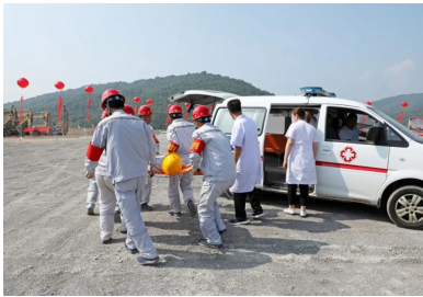 兖州中材吕梁分公司开展坍塌事故应急救援演练