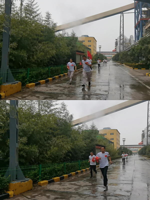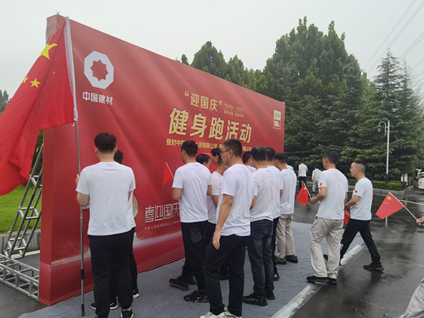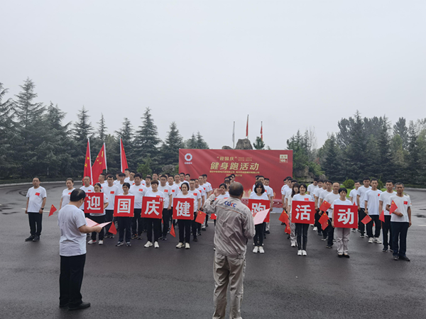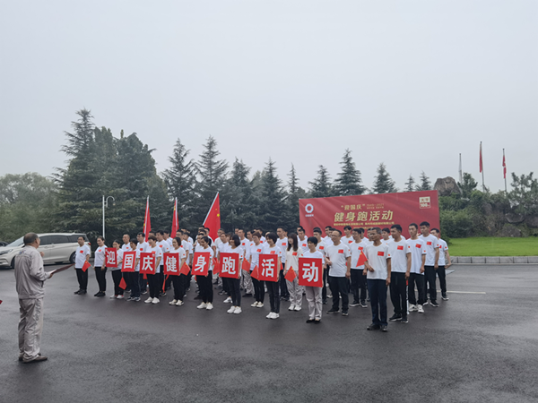 活动开幕式前,来自各部门50多名职工身着统一服装,精神饱满的在办公楼前列队,登封中联水泥有限公司刘总为本次“迎国庆”健身跑活动致辞,秉承快乐工作,健康生活的宗旨,雨天在保证安全的前提下,跑出快乐,跑出活力。