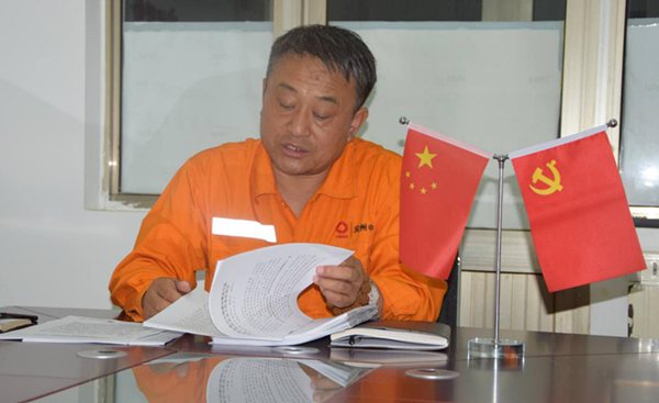 项目经理康斌给员工宣传党史教育
