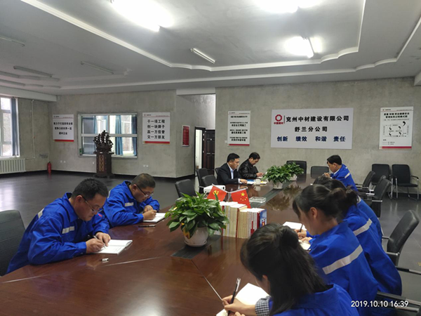 10月10日下午,舒兰项目部组织开展“不忘初心、牢记使命”专题教育活动,兖州中材总经理柯升作专题党课报告,东北片区党支部党员及舒兰分公司入党积极分子、团员参与会议。