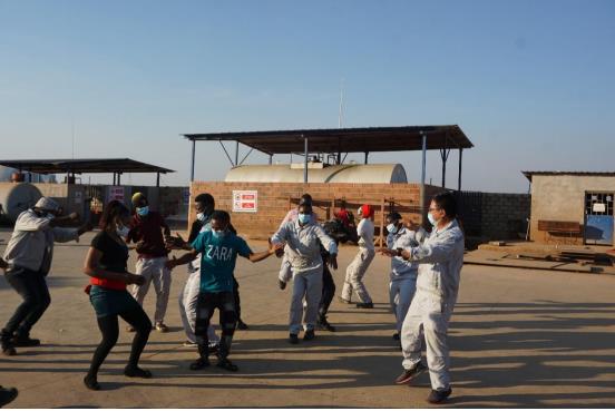 比赛间隙,中赞籍职工一起欢快舞蹈。