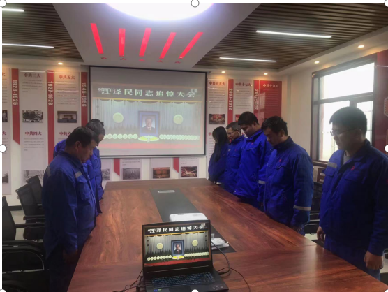 上午10时,在低回的哀乐声中,白坪分公司全体员工集体默哀,表达对江泽民同志的崇高敬意和深切缅怀。