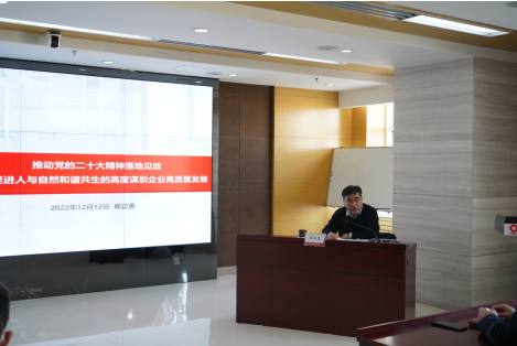 郭正勇从三方面进行了深入阐述和精彩宣讲。一是深刻理解二十大报告中关于推动绿色发展,促进人与自然和谐共生的深刻内涵;二是全面把握人与自然和谐共生新任务,聚力践行央企绿色发展使命担当;三是聚焦近期工作,强化担当落实。