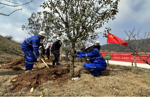 学习结束,参会人员到矿山现场开展“党旗红、添新绿”主题党日植树活动,以实际行动践行绿色发展理念。