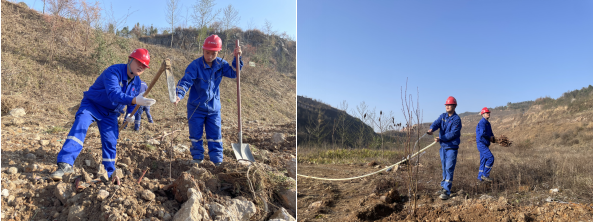 春风催新绿,植树正当时。上午9时,植树现场全员带上工具直奔目的地,大家分工协作,挥锹挖坑、扶苗栽苗、浇水培土,个个干劲十足,各个环节衔接有序,配合默契,劳动现场处处是忙碌的身影,一派春意盎然、生机勃勃的景象,真正是劲往一处使、汗往一处流,充分发扬了团结、互助、友爱的精神。
